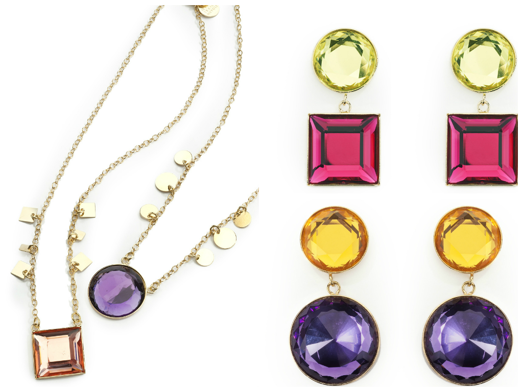 Amate i colori accesi e le gemme. La collezione di Nina Tra le Nuvole è quella che fa per voi! Pietre colorate, forme geometriche per orecchini e collane bagnati in oro giallo. Nina Tra le Nuvole è un giovane brand italiano che punta ad uno stile chic metropolitano, femminile e glamour.