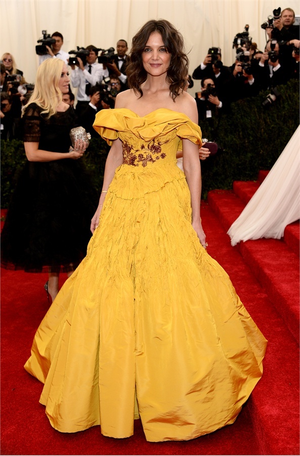 Katie Holmes invece opta per un colore insolito sul red carpet e cioè il giallo. Long dress con spalle scoperte e gonna voluminosa per un abito firmato Marchesa.